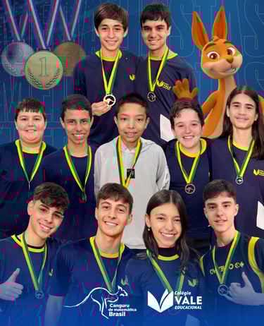 Nossos alunos conquistaram medalhas na Olimpíada Canguru, resultado do empenho e dedicação cultivados no Vale. Cada conquista reforça nosso incentivo ao pensamento crítico e à superação.